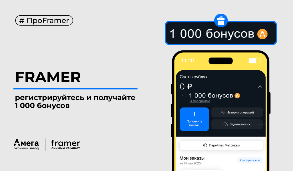 1 000 приветственных бонусов* на счёт Framer по промокоду