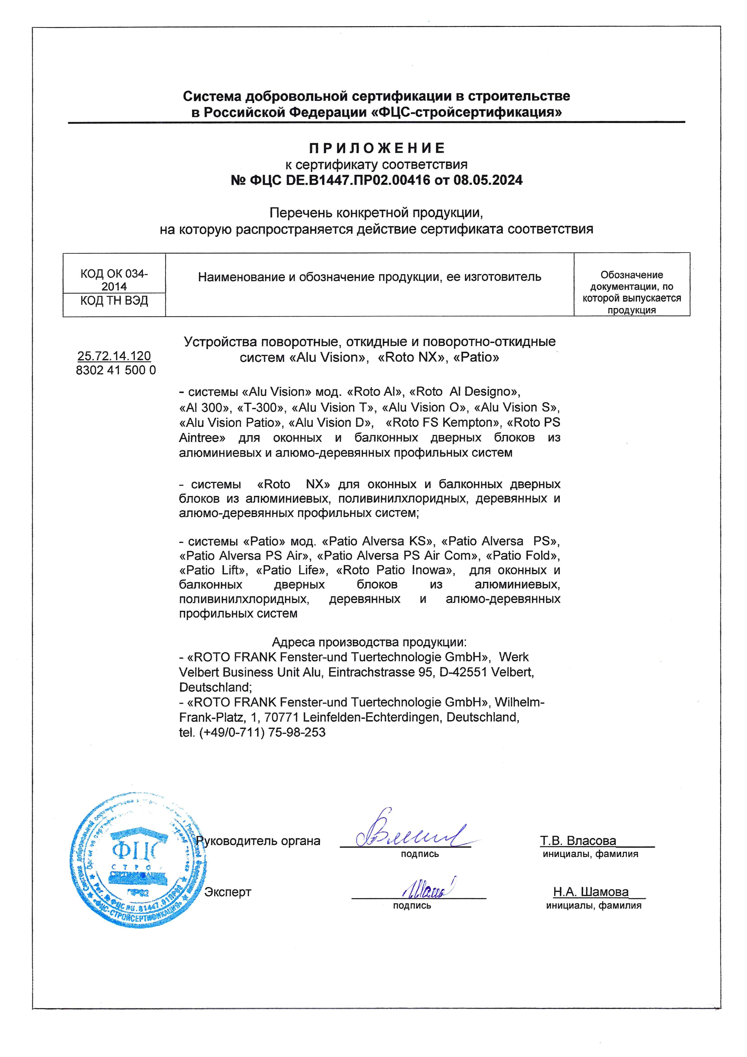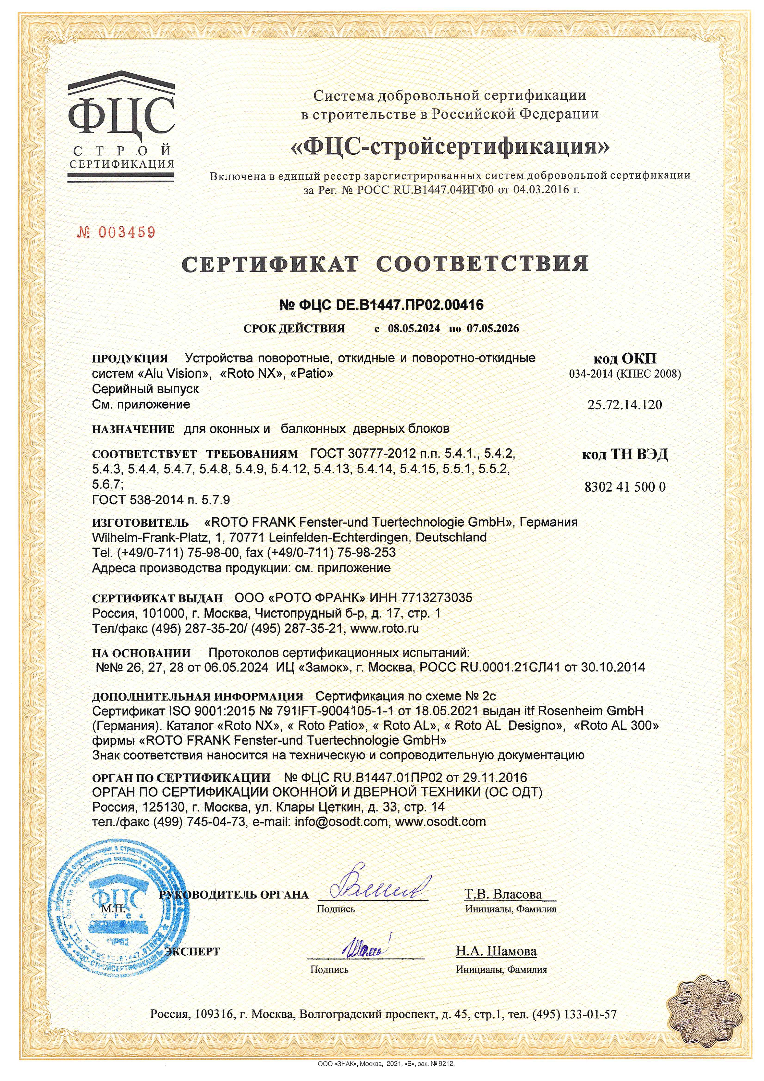 Сертификаты о соответствии ROTO