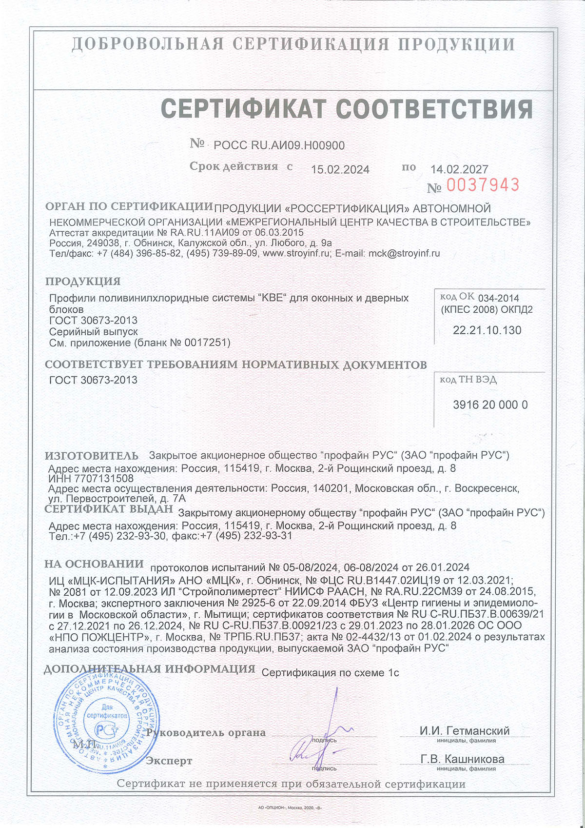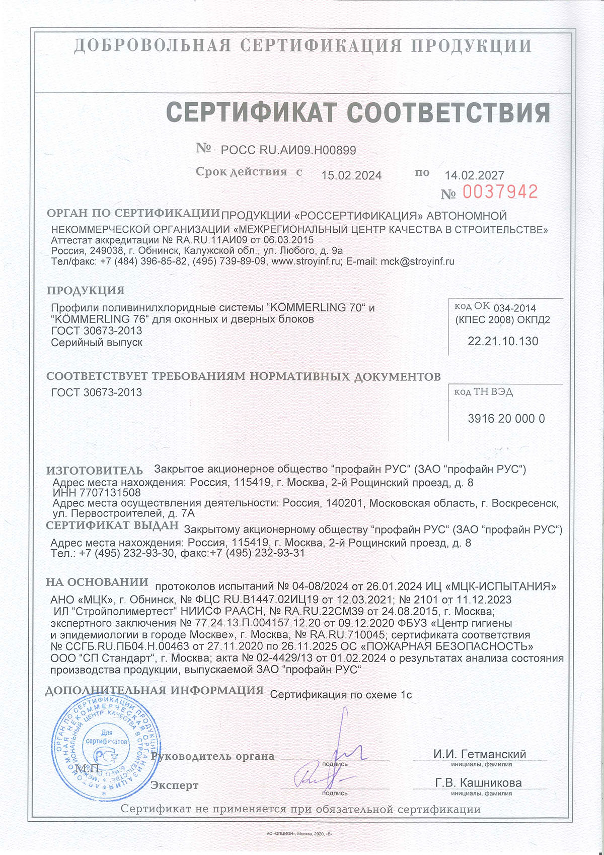 Сертификат о соответствии KÖMMERLING