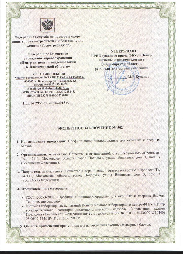 Сертификаты о соответствии PROPLEX