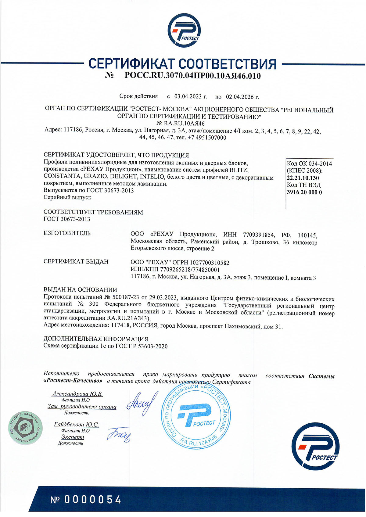 Сертификаты о соответствии Rehau