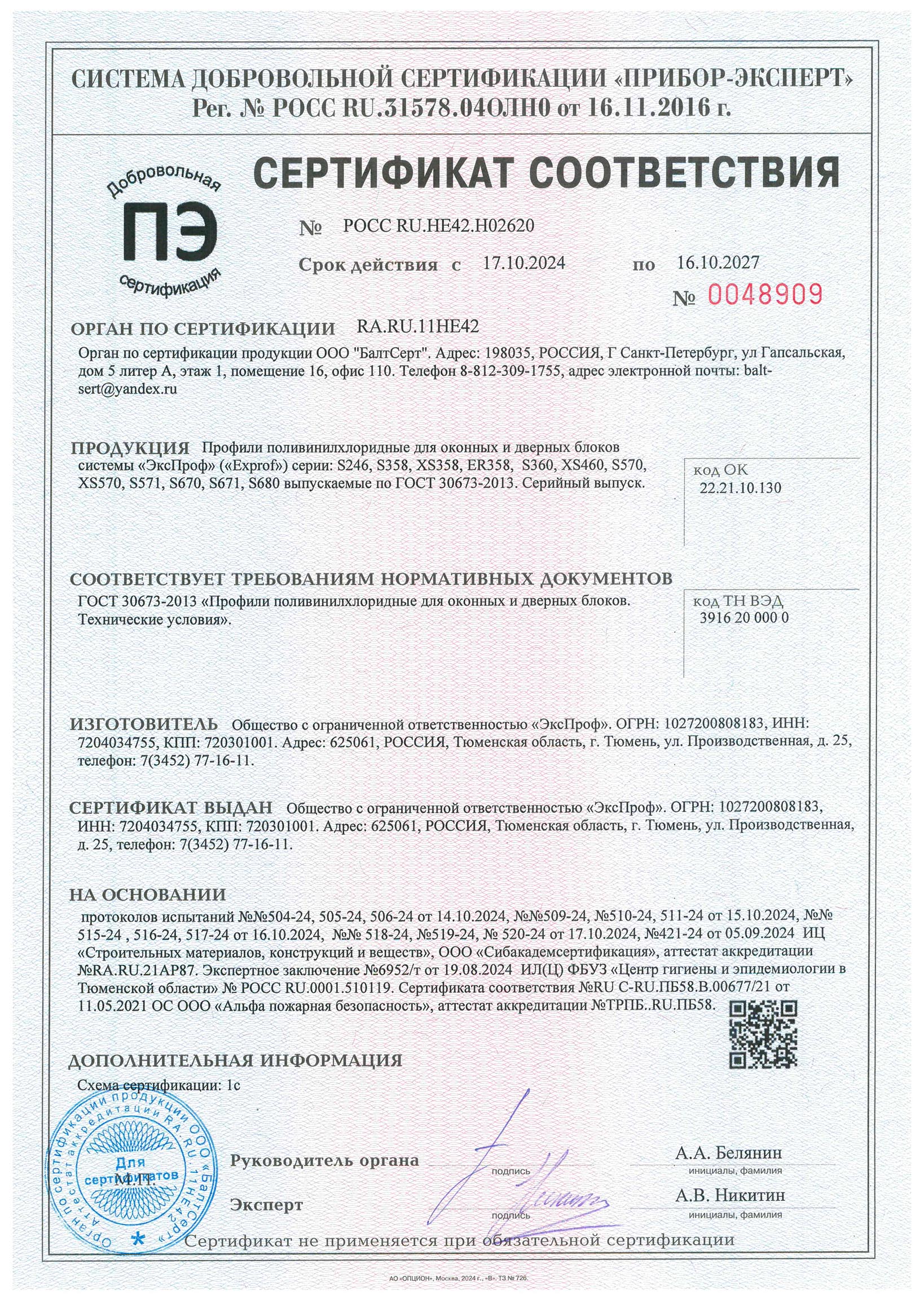 Сертификаты о соответствии EXPROF